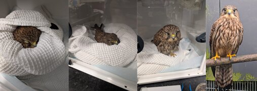 This poorly little kestrel was admitted during the cold spell in January, having been found with it's wing quite literal