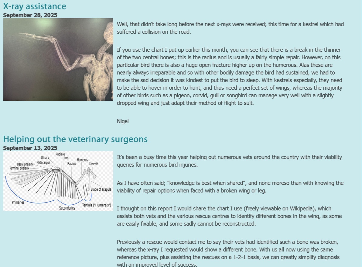 The veterinary surgeries do sometimes also need help in finding out where their local wildlife rescues are, but notably do keep checking up on viability of operations for birds with broken bones. Such was the request for our detailed information on our website last September, we have reproduced the information and send it out as a jpg image so it is readily to hand.